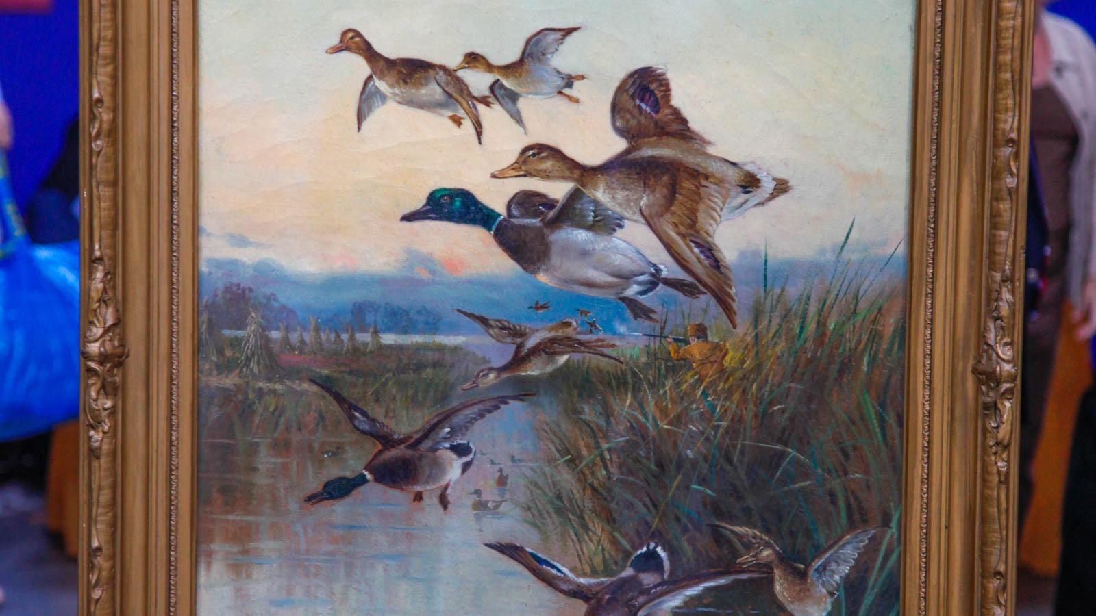 Finds include a Tiffany Studios Turtleback diver's lamp, John George Brown's Making Houses of Sand oil painting and a Chinese silk dragon panel.