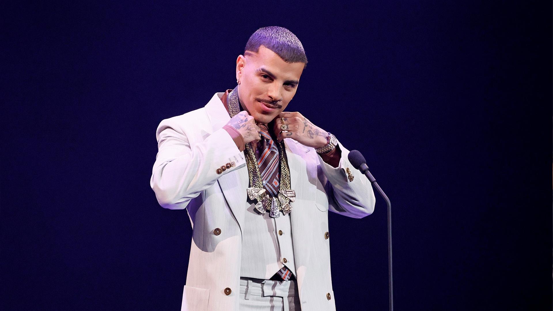 Rauw Alejandro dedicates, “Este premio para todos usted” as a part of his acceptance speech for the 2025 Vision Award as a part of the 38th Hispanic Heritage Awards.