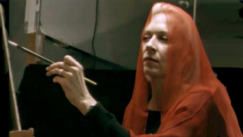 As she works on a self-portrait, Louisville artist Gaela Erwin talks about her interest in the genre and how she paints herself in costume or with symbols such as birds.