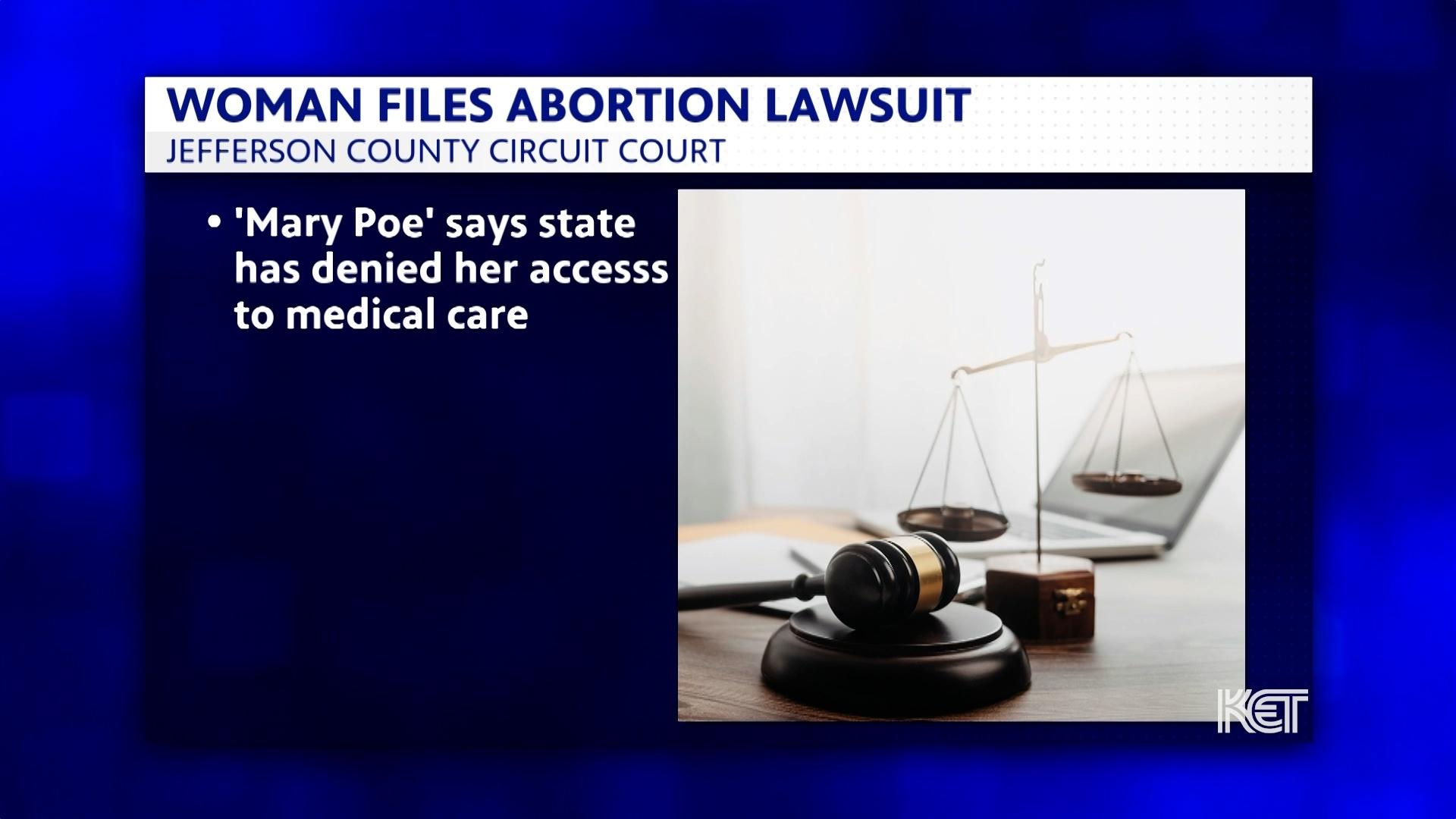 The ACLU of Kentucky says a woman who is seven weeks pregnant is suing the state, claiming Kentucky's near-total abortion ban violates her Constitutional rights to privacy and self-determination.