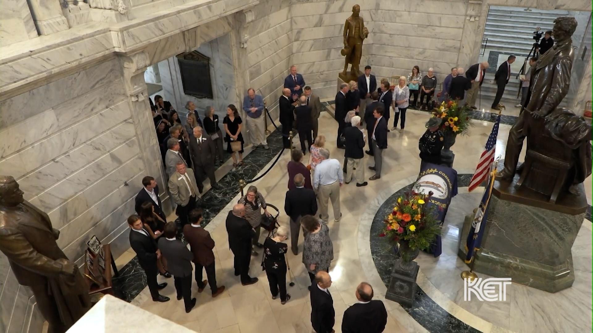 Words "Kentucky History" in front of a statue.