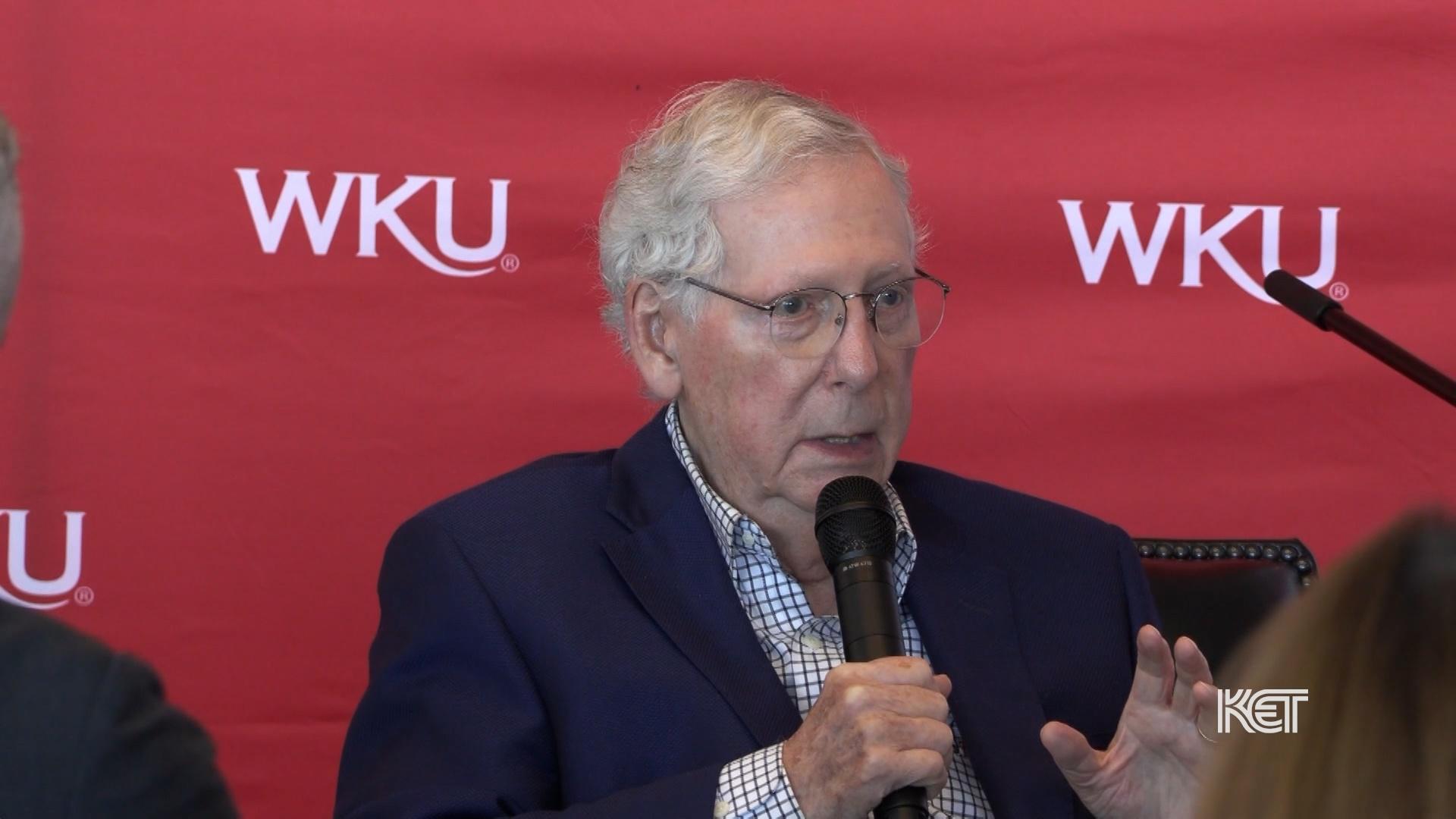 U.S. Senate Minority Leader Mitch McConnell is making several appearances in Kentucky this week. On Tuesday he was in Warren County to address a private event hosted by the Bowling Green Area Chamber of Commerce. Laura Rogers has more from McConnell's visit.